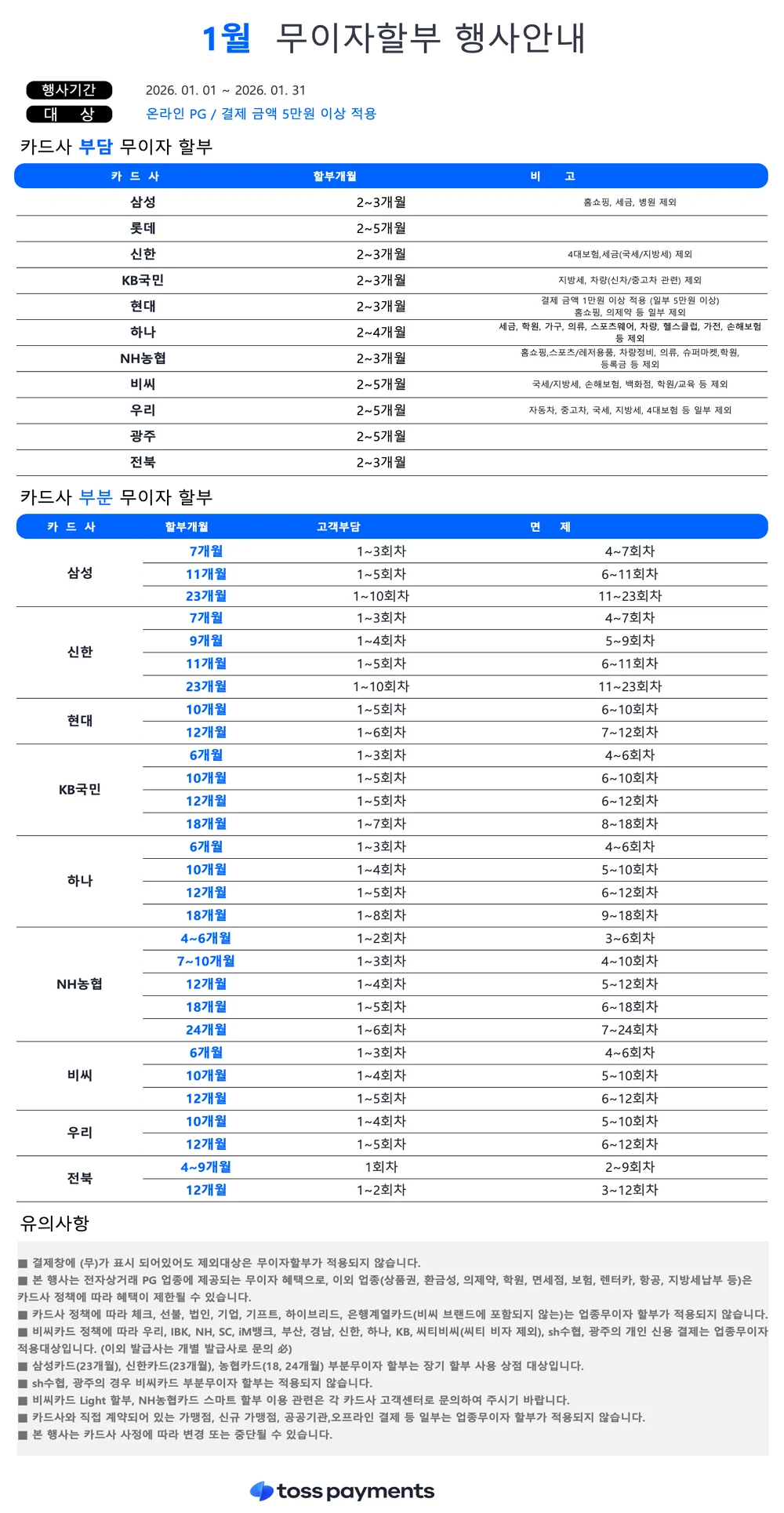 | ◆ 2026년 1월 무이자 할부 이벤트 카드안내 ◆ | |||
