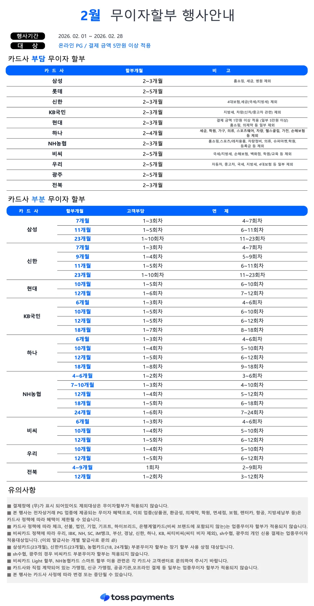 | ◆ 2026년 2월 무이자 할부 이벤트 카드안내 ◆ | |||